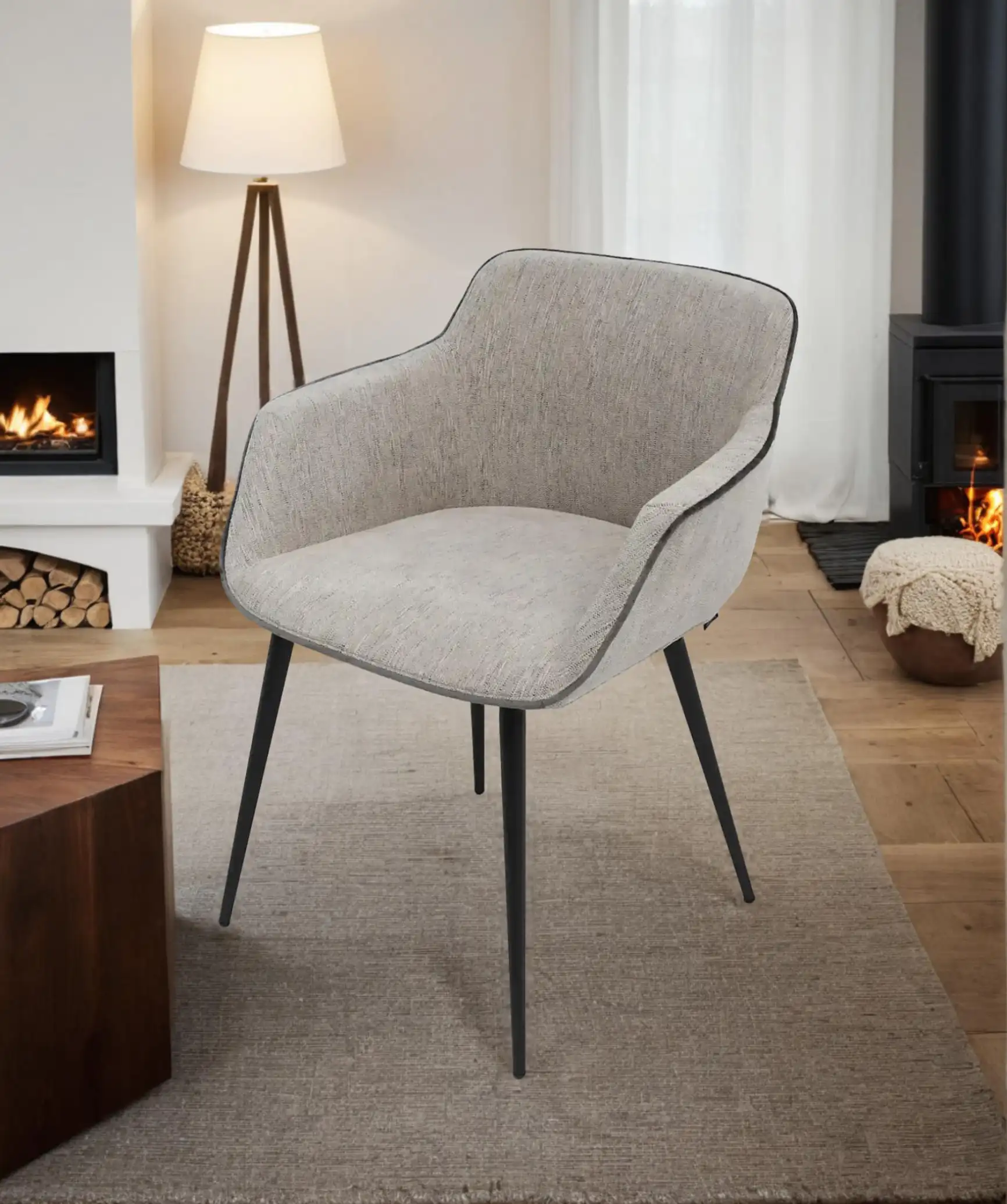 Upholstered in soft fabric, features modern and stylish. The dark brown powder-coated legs provide stability and a touch of contemporary flair. Upgrade your dining room or living room with the Barrelroll Dining Chairs.