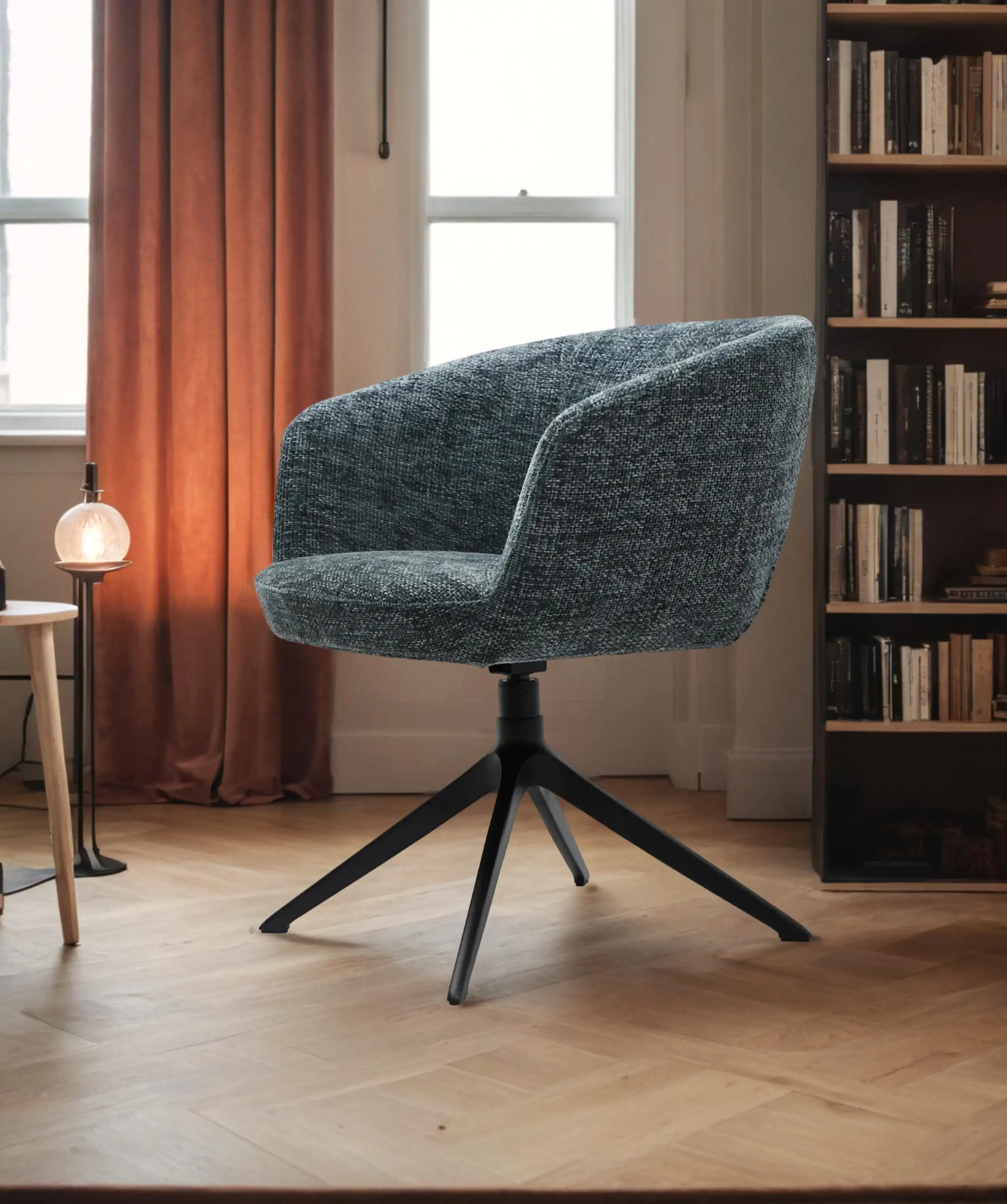 Its metal base is swivel and coated with Dark Brown powder spray, giving it a sleek and modern appearance. Perfect for any office working space or living room.