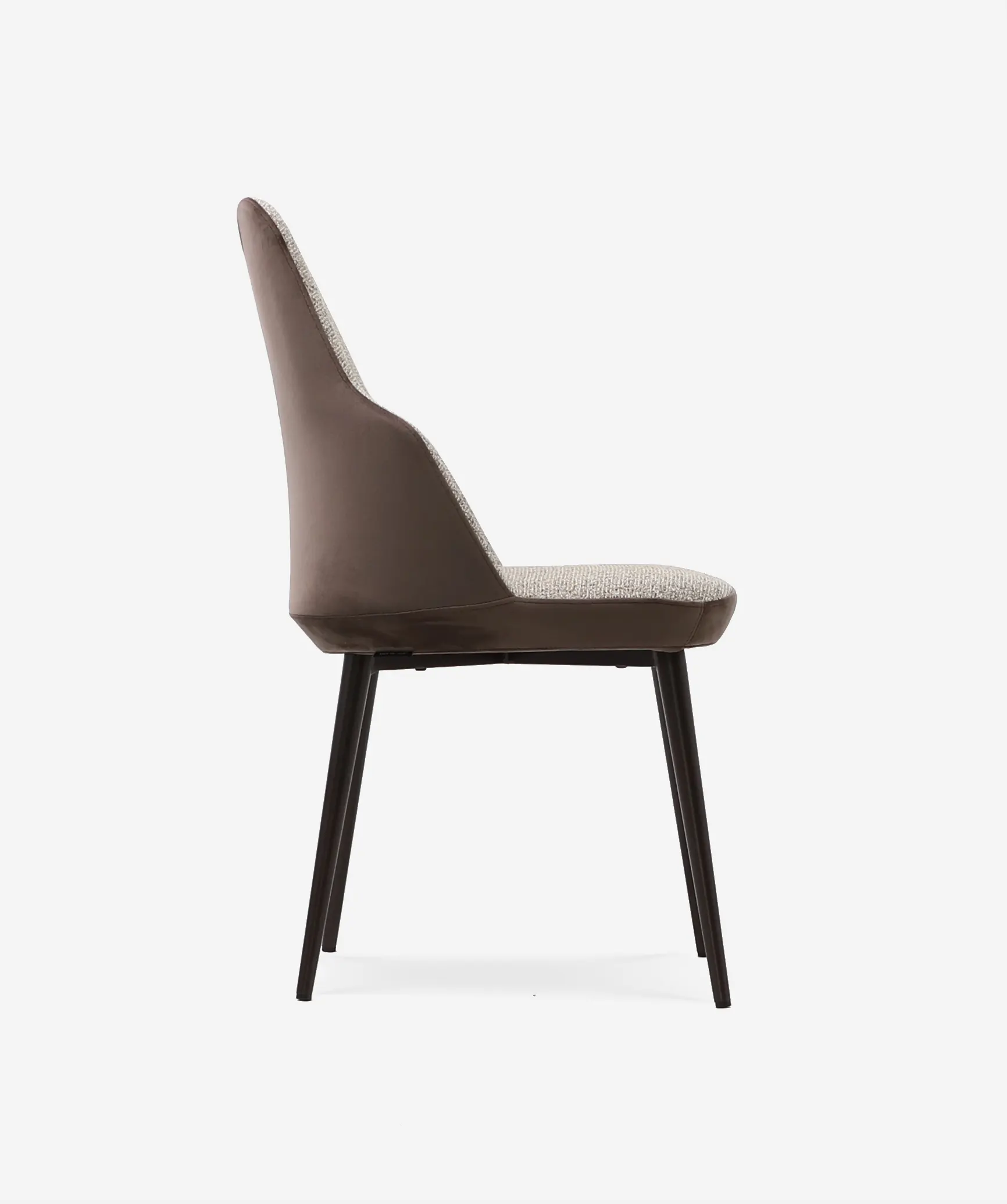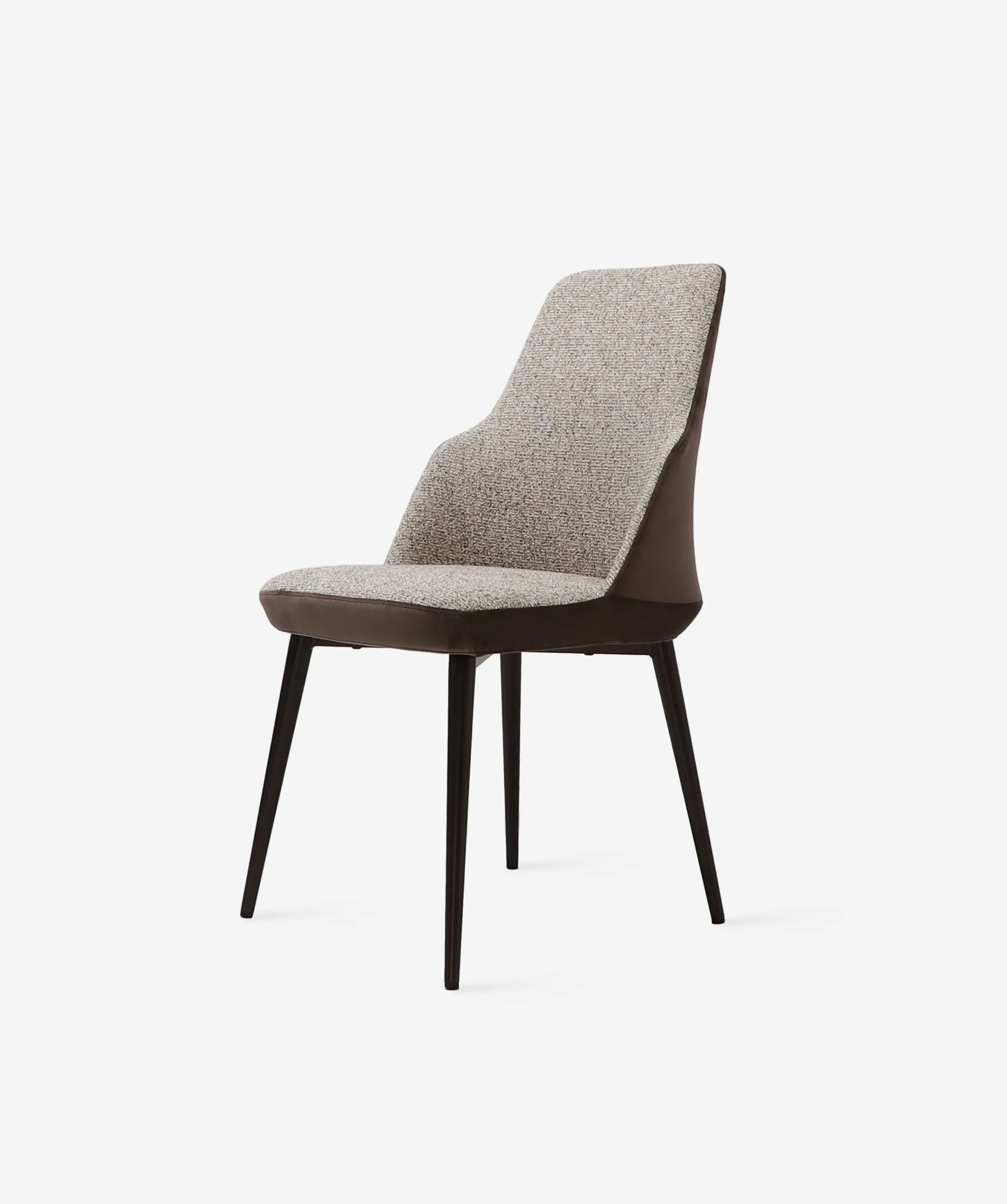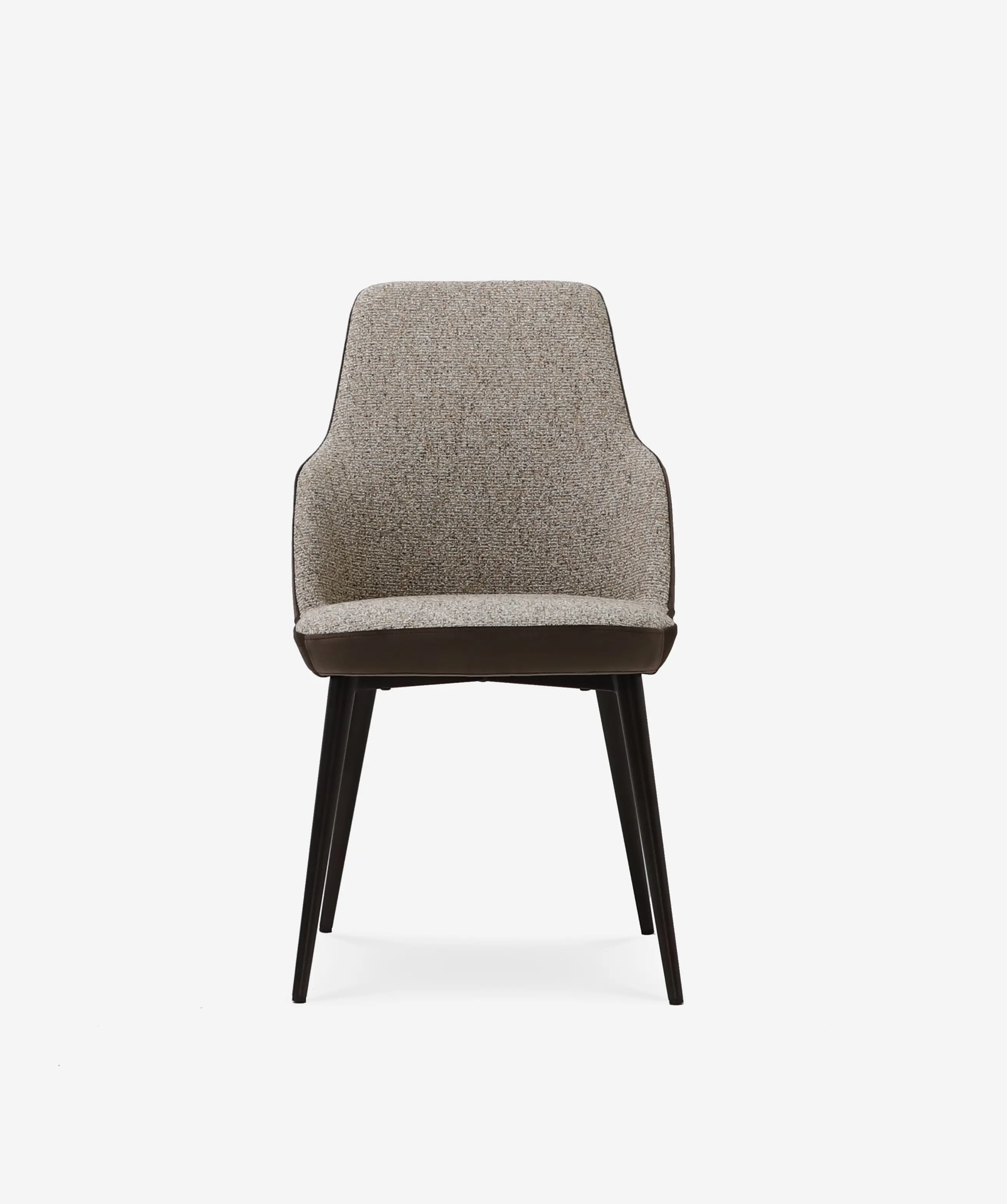 Our Modern Marvel Chair with mid-back dining chair–a perfect blend of style and comfort. Upholstered in a combination of fabrics on a moulded foam body, this chair exudes sophistication.