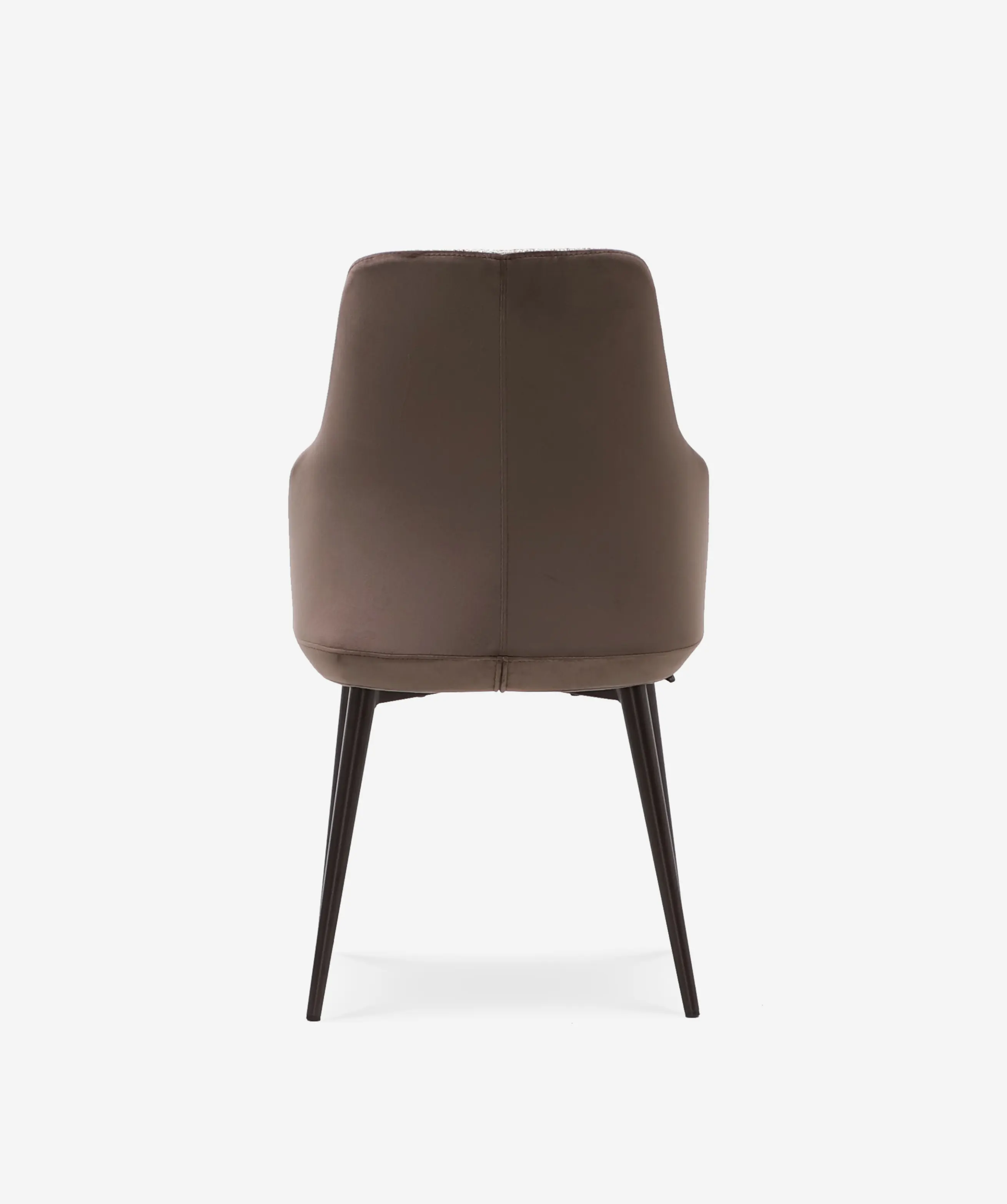 The dark brown metal legs are powder-coated finishing. Elevate your dining space with this effortlessly chic and comfortable seating solution. Adding a sleek and contemporary touch to your dining room or living room. Shin your style.